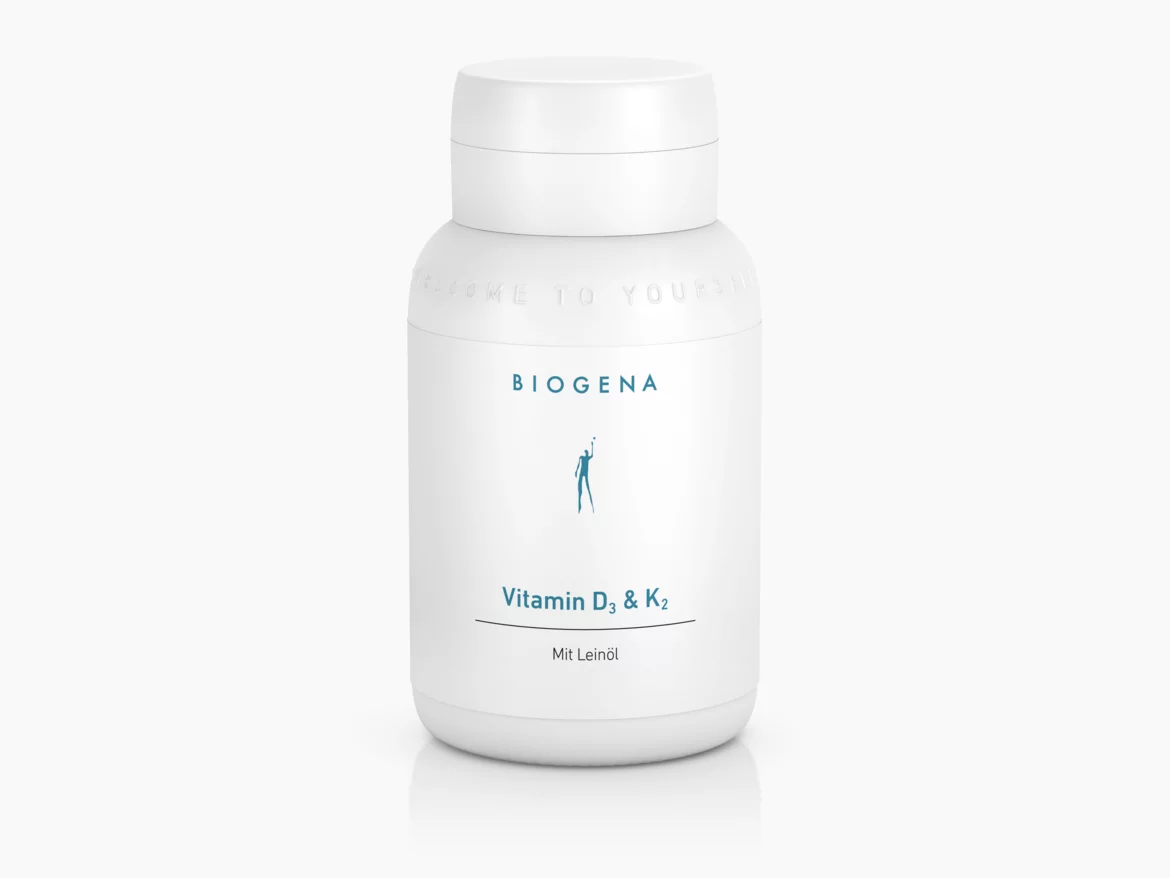 Unsere Knochen sind lebendes Gewebe, das einem ständigen Auf- und Abbau unterliegt. Dadurch ergibt sich ein laufender Wechsel zwischen der Aufnahme und dem Einbau von knochenrelevanten Mikronährstoffen wie Calcium und Phosphor in die Knochen-Mobilisierung und Abgabe an das Blut. Die Vitamine D und K spielen eine wichtige Rolle bei der Erhaltung der Knochen und beeinflussen somit die Knochenbeschaffenheit maßgebend. Die synergistischen Effekte der Vitamine D3 und K2 sind außerdem Schwerpunkt der aktuellen Wissenschaft und Forschung, was zur Entwicklung dieses Mikronährstoffpräparates geführt hat. Neben den erwähnten knochenrelevanten Vitaminen enthält Biogena Vitamin D3 & K2 auch hochwertiges Öl aus Leinsamen, welches besonders hohe Gehalte an der Omega-3-Fettsäure alpha-Linolensäure aufweist. In Leinöl enthaltene Fettsäuren unterstützen außerdem die Aufnahme von fettlöslichen Vitaminen im Dünndarm. Leinöl stellt somit eine sinnvolle Ergänzung des Mikronährstoffspektrums dar.